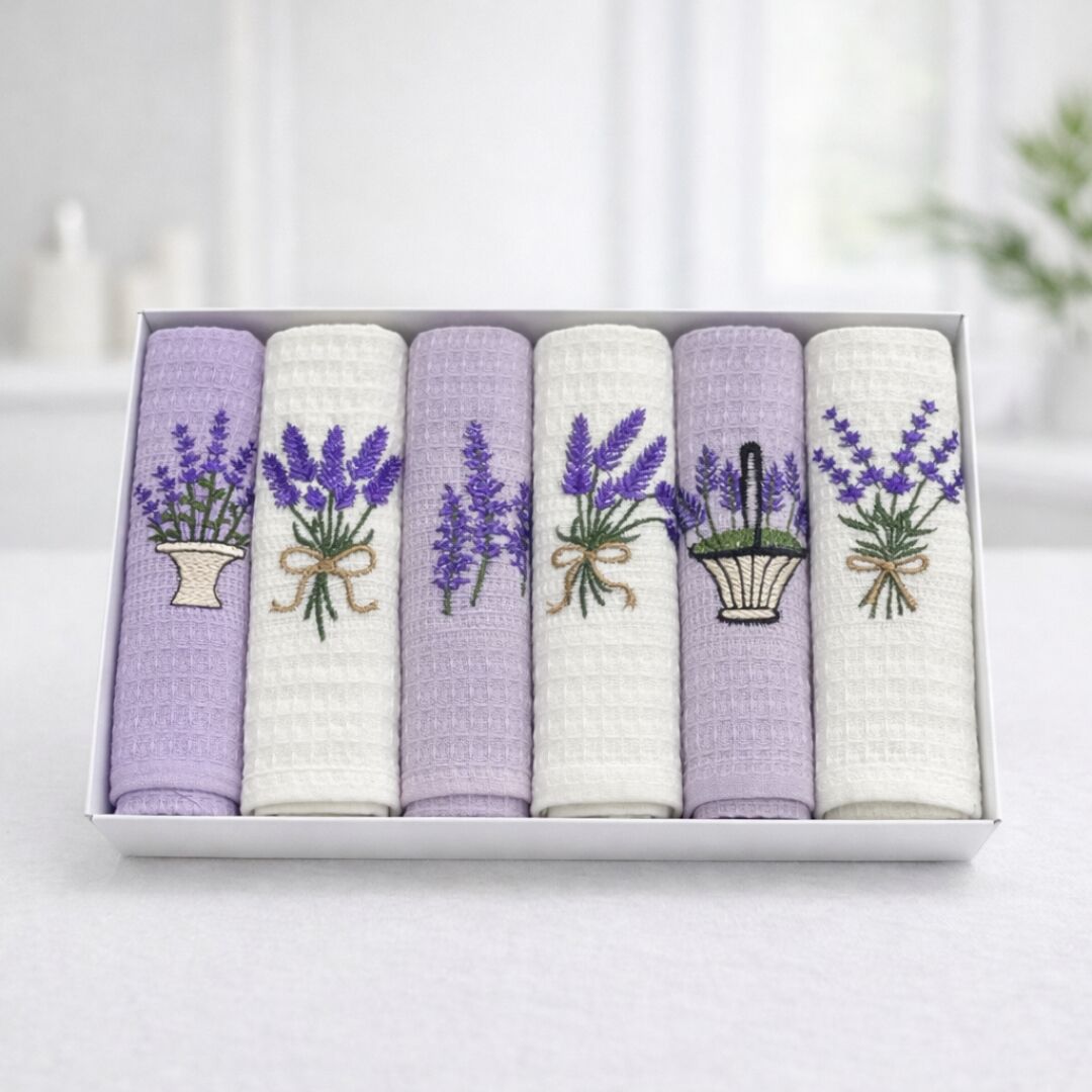 Вафельні кухонні рушники — це практичний текстиль зі 100% бавовни з характерною рельєфною структурою «у клітинку», яка забезпечує високу гігроскопічність та швидке висихання. Завдяки міцності та здатності не залишати ворсу, вони ідеально підходять для витирання посуду та рук.