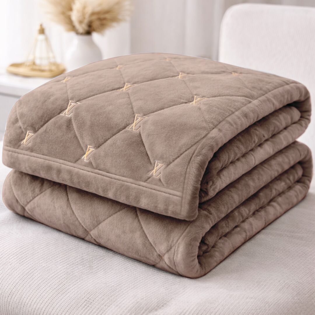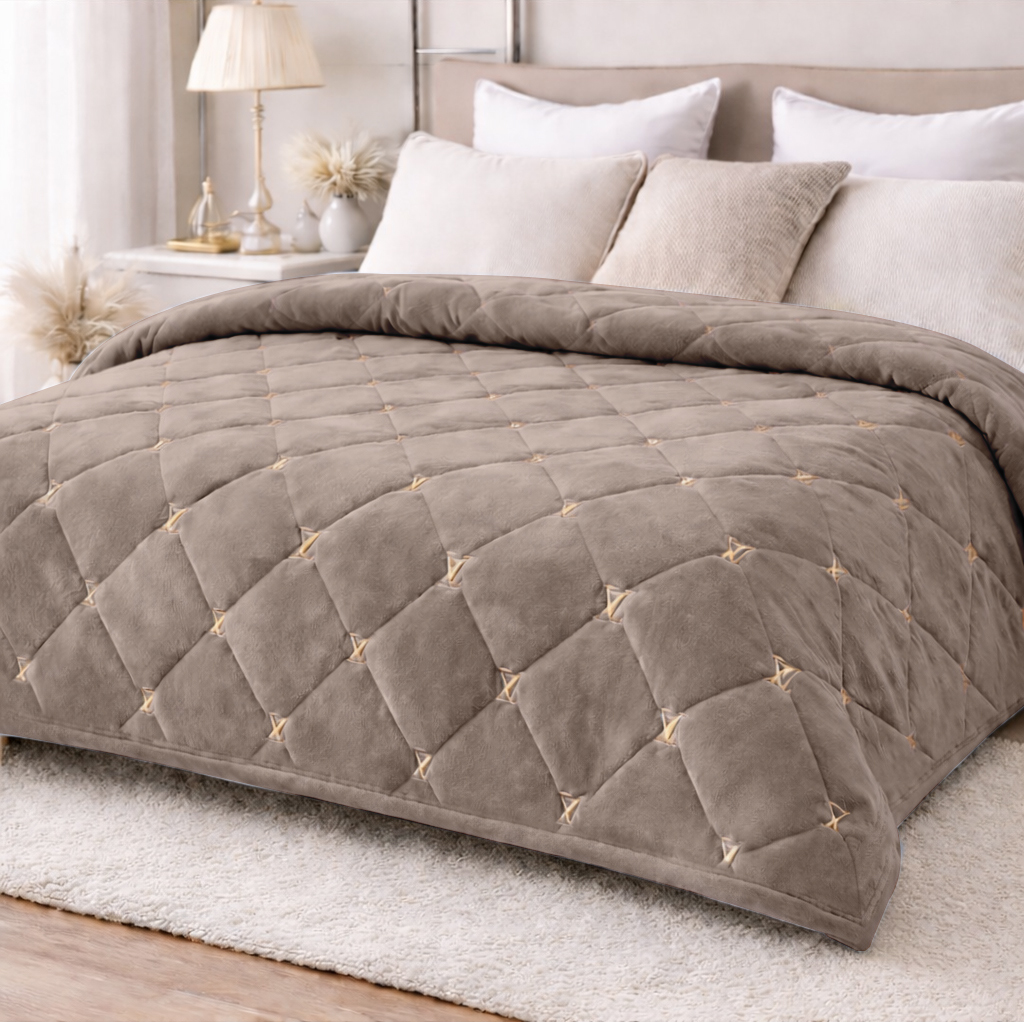 Покривало має м'яку ,приємну на дотик, текстуру завдяки велюровій тканині, яка надає йому вишуканий вигляд. Цей виріб легкий і водночас теплий, ідеальний для зимових вечорів або для створення комфорту Вашого спального місця чи дивану.